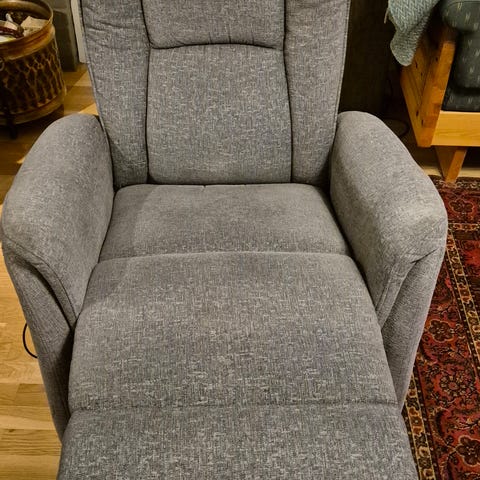 Komfortabel og solid elektrisk løftestol med fjernstyring for justering av rygg og innebygget fotskammel. Praktisk løftesystem for å komme inn/ut av stolen. Kjøpt på Bohus høsten 2025 i forbindelse med akutt ryggproblem, men nå støver den dessverre ned. Den er pen og nett til avansert løftestol å være og passer derfor inn i de fleste interiører. Sendes ikke, men kan hentes hos selger. 10 års garanti fra produsenten følger produktet. Kvitteringen følger med.