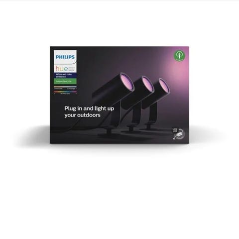 Philips Hue LED-pærer med tilbehør bestående av tre LED-pærer med filamentdesign, en vanlig LED-pære(ikea), tre GU10-pæreholdere(multi farge,16millioner farger), en fjernkontroll og en veggbryter. Pærene har ulike former og størrelser, og er egnet for smart belysning med mulighet for fjernstyring.