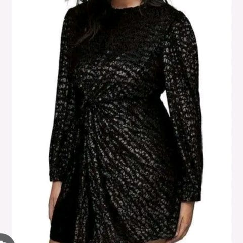 Floydkjole i bomull, svart farge, størrelse L. Kjolen har korte ermer med rynking, innsvinget midje og dekorative detaljer i stoffet. Egnet som hverdagsplagg for kvinner, men kan også pyntes opp til fest.