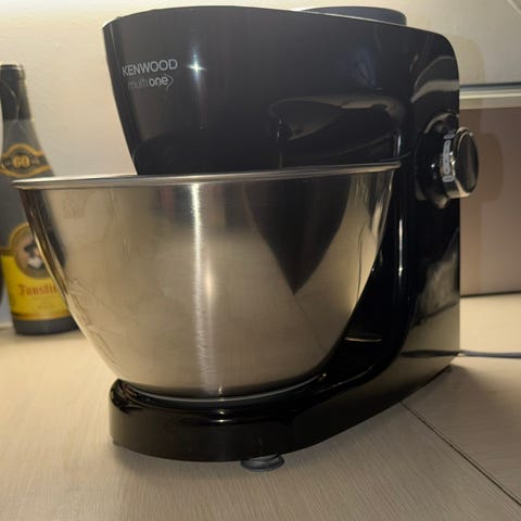 Har en kjøkkenmaskin med med vips, eltekrok og en annen vips, føger også med kjøttkvern