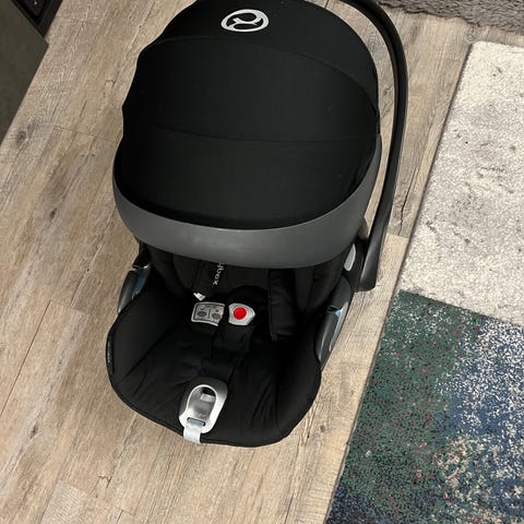 Pent brukt baby bilstol med nyfødt innlegg . Kjøpt brukt i 2024. Bruk av ett barn. Farge sort. Isofix base.
