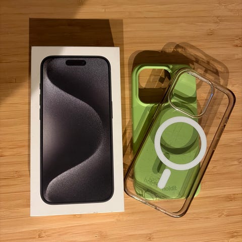 Inkluderer med et svart deksel og beskyttelseskjermen som allerede er på.