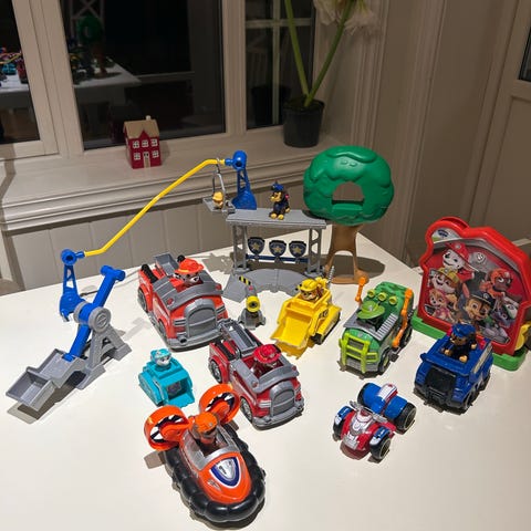 Paw Patrol Transforming Rescue Truck leke med flere funksjoner for lek og rollelek. Inkluderer ramper, kjøretøy og tilbehør for å simulere redningsoppdrag. Laget i plast med røde og blå farger. Passer for barn.
