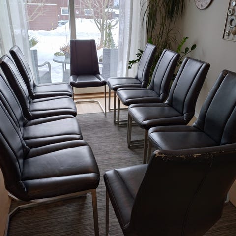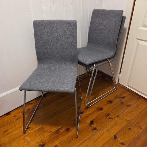 4 stk stoler med veldig lite slitasje og en av de er itt forskjellig på beine (se bilde 3). Selges til 1000kr