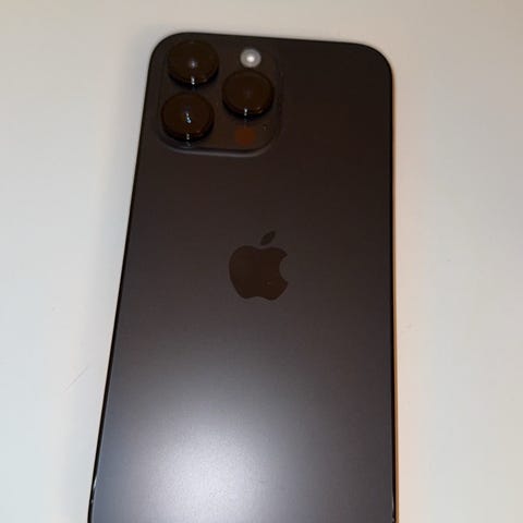 Apple iPhone 14 Pro mobiltelefon med 128 GB lagringskapasitet. Enheten har en skjerm i front og tre kameraer på baksiden. Batterikapasiteten er målt til 83 % av maksimal kapasitet, og optimalisert batterilading er aktivert for å redusere batterislitasje.
