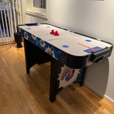Airhockey selges rimelig. Mye bruk igjen. Følger med to køller og to pucer