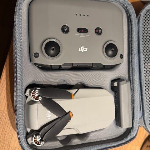Drone Pro drone med fjernkontroll og oppbevaringsetui. Dronen har fire armer med propeller og en kameraenhet montert under. Fjernkontrollen har to joysticks og flere kontrollknapper. Inkluderer etui for oppbevaring av dronen og tilbehør. Jeg vet ikke hvor mye dronen er hvert men hvis du hvet sånn cirka send meg gjerne en melding så kan vi nok bli enig om en pris😀