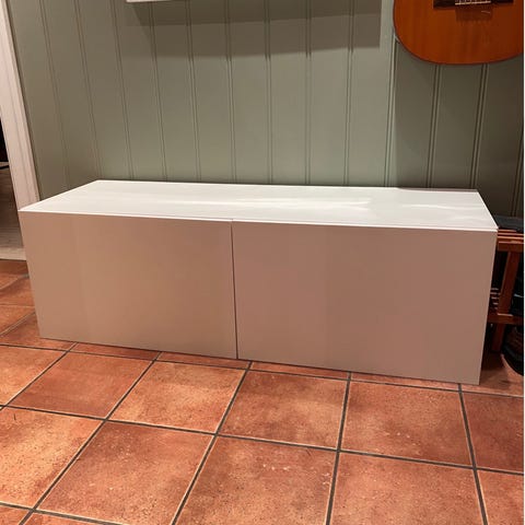 Merk: Skjenken har en liten skade på sidekanten av døren, ikke synlig fra front. Skaden oppsto av varme fra en gulvlampe som stod for nær.