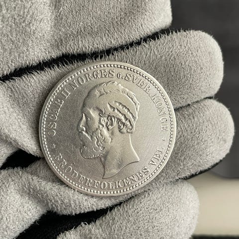 Til salgs: en eksepsjonelt sjelden svensk 2 øre-mynt fra 1880-tallet med en spektakulær pregefeil – årstallet stopper på «188», uten siste siffer. Et slikt avvik gjør mynten helt unik sammenlignet med ordinære utgaver fra perioden.