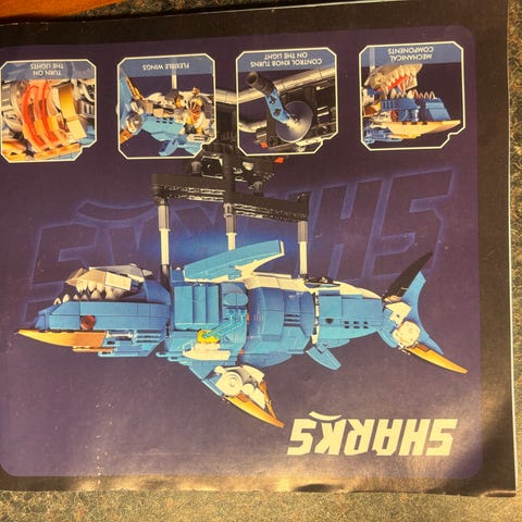 Selger Shark Machinery, byggesett med klosser, type kopi av Lego