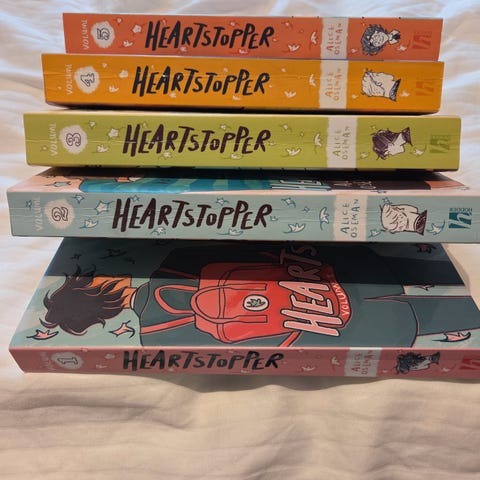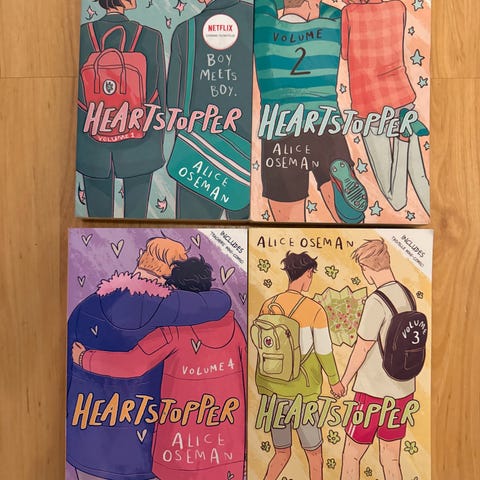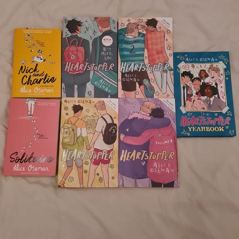 Alice Oseman Romanserier bestående av bøkene Heartstopper, I Was Born for This, Radio Silence og Solitaire. Bøkene er skrevet på engelsk.