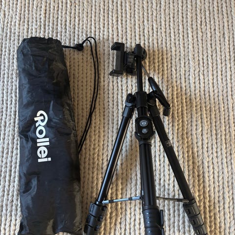 Rollei C6i Karbon Kamerastativ laget av karbonmateriale. Stativet har justerbare ben med sklisikre gummiføtter og inkluderer en bæreveske for enkel transport og oppbevaring.