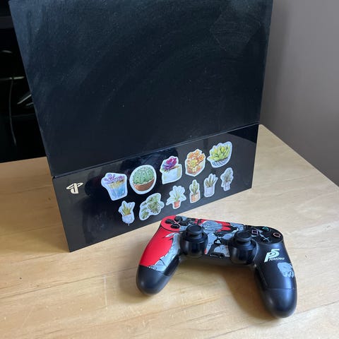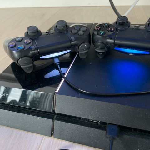 Pent brukt PS4. Det følger med to kontroller og alle nødvendige ledninger. Mulig Fifa 2015 og GTA kan følge med hvis jeg finner spillene.
