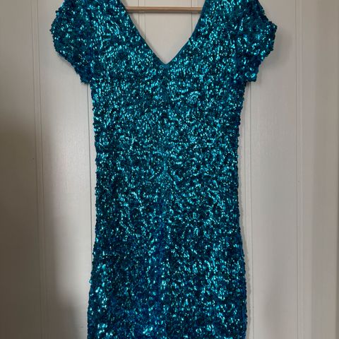 Toppen er av stretchy materiale, og er ikke innsvinget i midjen. Den er stylet med knyting bak på bildene for å vise en mer formet silhuett. Noen løse tråder på enden av ermene.