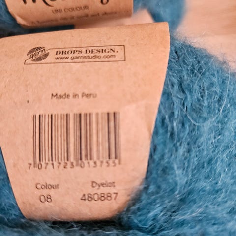 Pus garn i blå-grønn farge, laget av 70 % baby alpakka, 17 % akryl og 13 % polyamid. Hver nøste veier 50 gram og har en lengde på ca. 100 meter. Egnet for strikking og andre tekstilprosjekter.