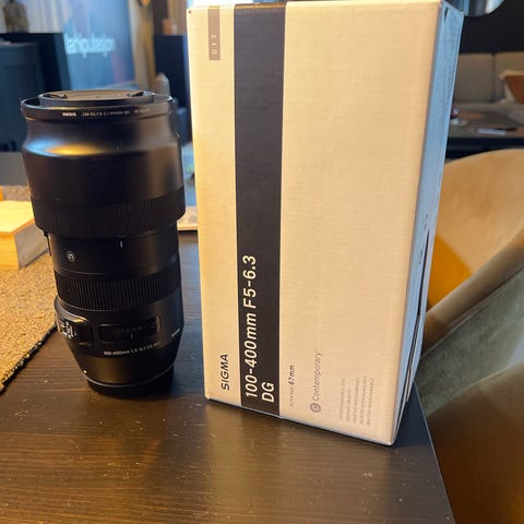 Følger med solblender og etui.