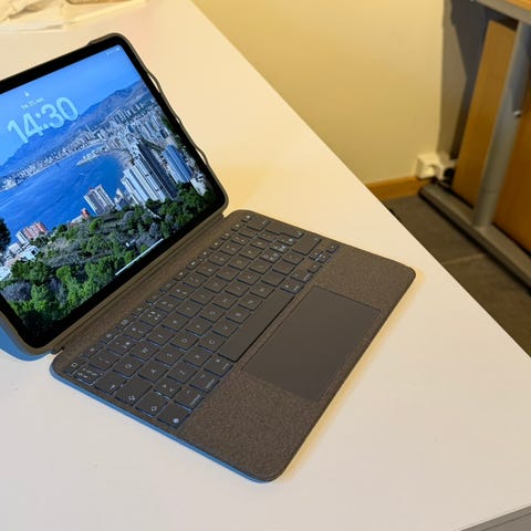 Combo touch med avtagbart tastatur med justerende lys i tastene til iPad 10th, A16. Passer også på iPad 11. Det er mult-touch styreplate og smart connector så du slipper å bruke lader eller Bluetooth. Det er også en holder til pencil/penn. Kjøpt nytt på Elkjøp for ca 1 måned siden.