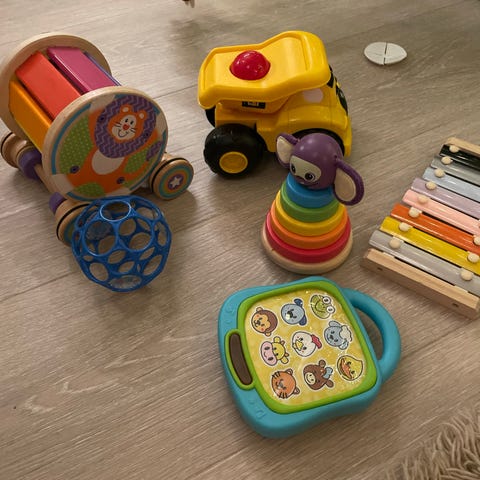treleke med hammer og baller i ulike farger. Leken er laget i tre og har et design som inkluderer en elefantfigur på siden. Passer for små barn som utvikler motoriske ferdigheter.