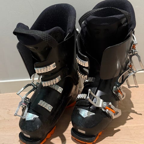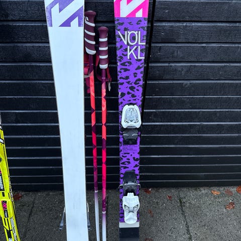 Pent brukte slalåmski og bindinger fra Atomic, lengde 150cm. Swix alpin staver, lengde 105cm.