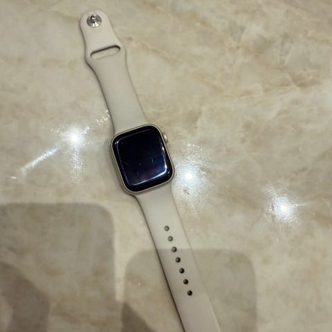 Apple Watch Series 8 GPS med 45 mm Starlight aluminiumkasse og Starlight sportarmbånd. Smartklokke med GPS-funksjonalitet og EKG. Leveres med original emballasje og usb-c lader. Original reim som er blitt litt misfarget. Ny i mai 2024. Batteri 87%. Et par bruksmerker. Følger med en ekstra reim.