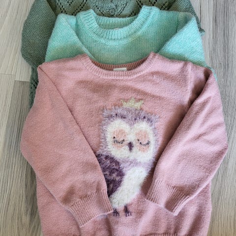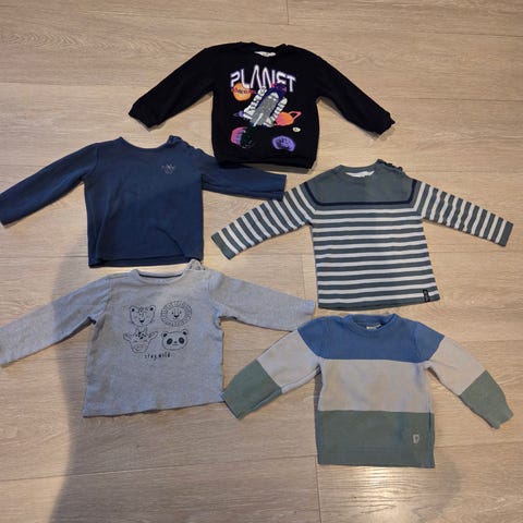 Lys blå fra H&M. Mørk blå fra Name It. Grønn med maskiner fra Lindex.