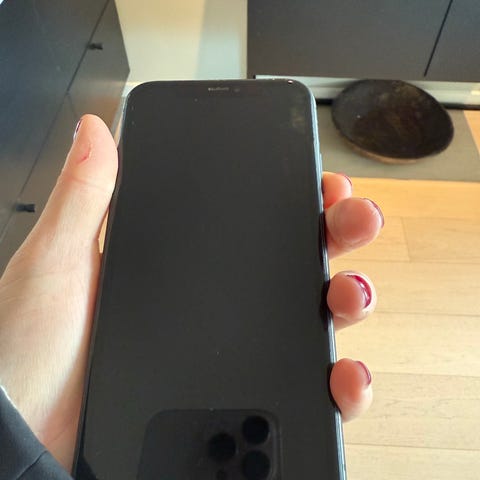 Apple iPhone 12 Pro mobiltelefon med 128 GB lagringskapasitet. Enheten har en mørk farge og er utstyrt med flere kameraer på baksiden. Telefonen har en stor skjerm med kant-til-kant design.