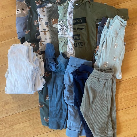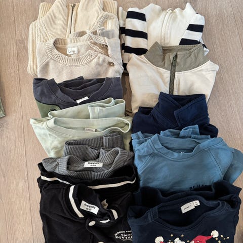 H&M pysj for gutt i størrelse 92. Klærne er flerfarget og laget av bomull. Inneholder ulike plagg som heldrakter og bukser, egnet for barn i denne aldersgruppen.