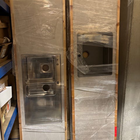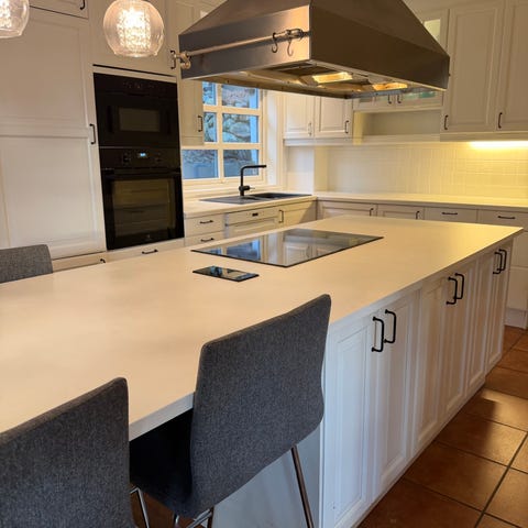 Det store hullet er til 80cm platetopp og det runde hullet er for nedfelt strømuttak.
