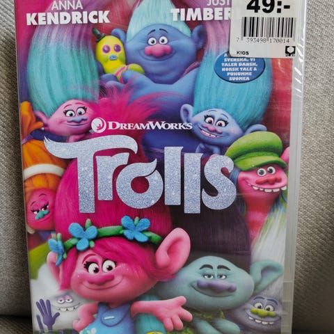 DreamWorks Trolls DVD med animasjonsfilm basert på karakterene fra Trolls-universet. Inneholder spesialfunksjoner og egnet for aldersgruppen 7 år og oppover.