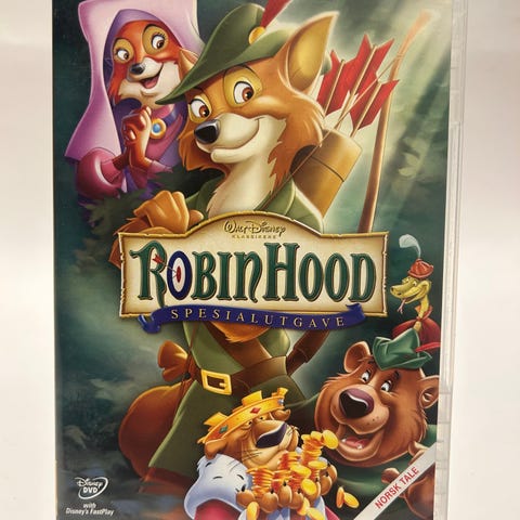 Disney Robin Hood DVD med animasjonsfilm basert på historien om Robin Hood. Inneholder filmen på DVD-format.