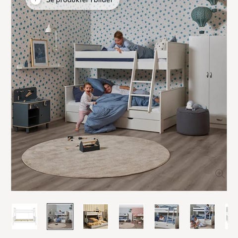 Seng kommer uten madrasser. Madrass størrelsen er 90x200. Solid seng av tre. Kan monteres som køyeseng som i bildene eller som 2 enkeltsenger.