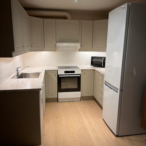 Hvitevarene følger ikke med, men kan kjøpes separat.