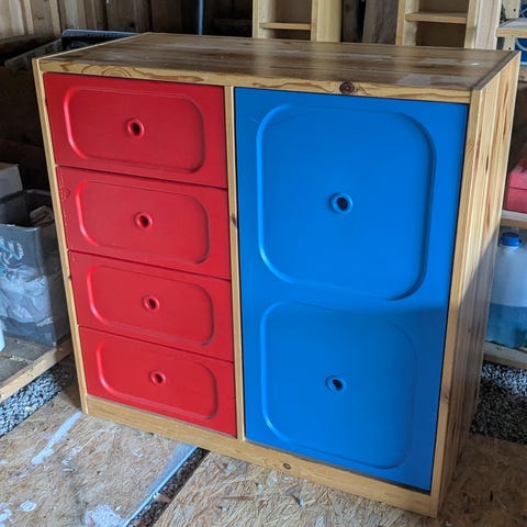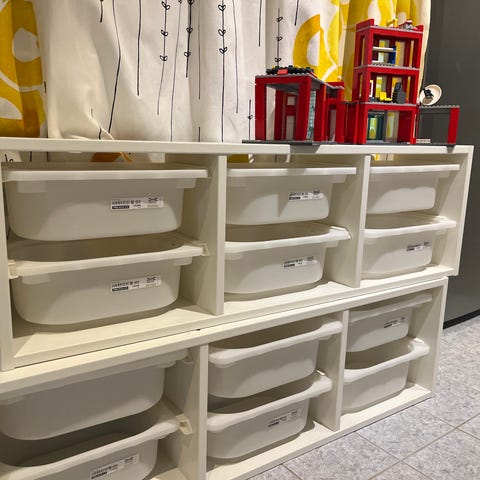 2 Trofast stammer i hvitbeiset furu & 1 hylle. Fra Ikea.