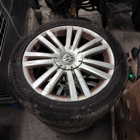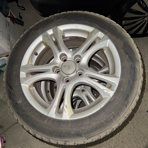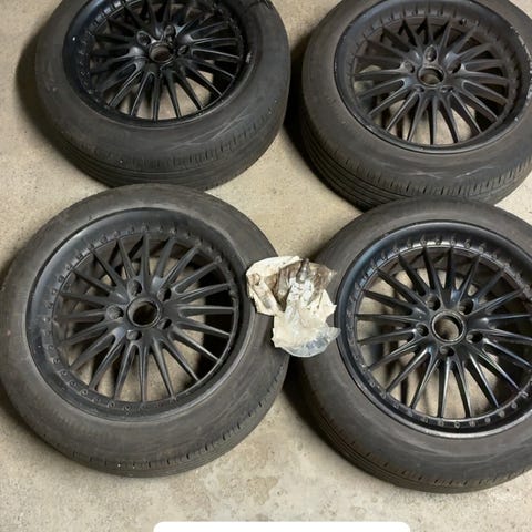 Felgene er greie, men bærer preg av bruk. Den ene felgen har en dypere skrape på utsiden (se bilder), og malingen har begynt å flasse på innsiden av felgene. Dette er kun kosmetisk.