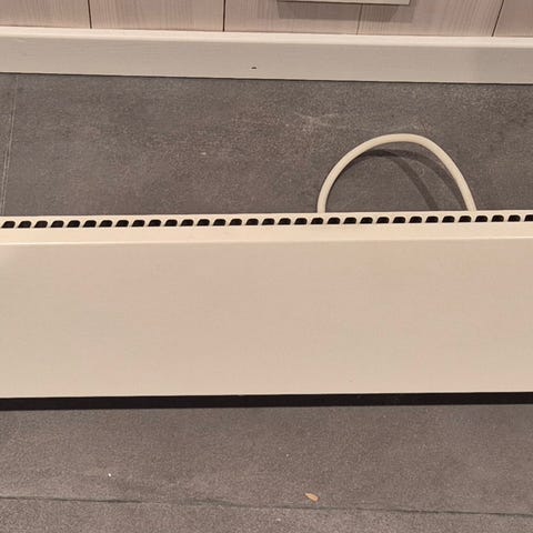 Adax panelovn med effekt på 1000 watt. Fargen er hvit. Inkluderer monteringsbraketter for veggmontering.