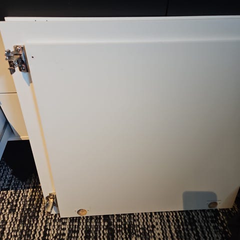 Fin og romslig skap (204 × 149cm) gis bort. Kun små skader nederst på dørene og nederste karm – ellers i god stand.