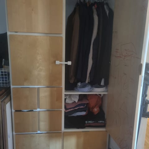 Stort og romslig 3-dørs skap i lys eikfarge gis bort.