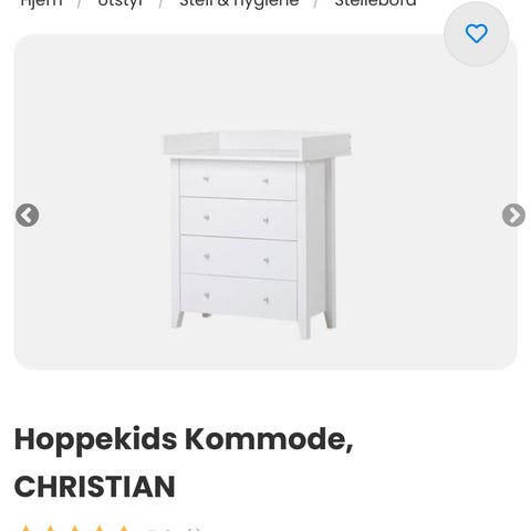 Nesten ikke brukt, da det har vært ekstra stelleplass. Stellematte følger med, og to trekk, og oppbevaringskurver og søppelbøtte for å henge på siden. Praktisk hylle under.