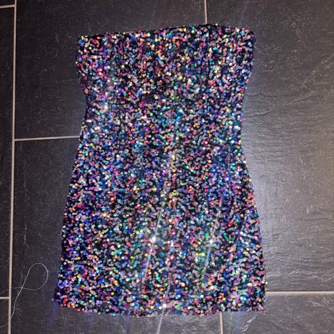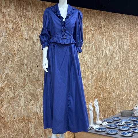 Laura Ashley festkjole i størrelse 38 for kvinner. Kjolen er blå med lyst blomstermønster. Laget av viskose. Designet for formelle anledninger. Ikke vært i bruk og merkelapp henger på.