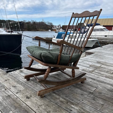 Veldig fin antikk gyngestol. Behagelig og solid. Må hentes.