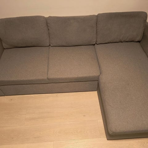 Pent brukt og fin sovesofa fra Jysk selges billig grunnet flytting. Armlenene kan tas av ved behov. Legges veldig enkelt ned til sovesofa. Trebein. Veldig pent brukt.