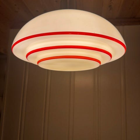 Vintage franske pendeler i frostet glass. Originale fatninger i messing. Ledningene som er på nå har sukkerbit, bryter og stikk.