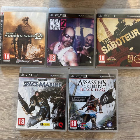 Playstation 3 spillpakke med Tekken, Assassin's Creed, og Battlefield 4. Spillene er i original emballasje og passer til Playstation 3 konsoll. 150/stk evt. 400 for alle samlet.