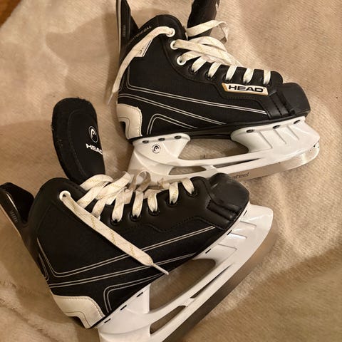 Barneskøyter størrelse 36 designet for ishockey. Skøytene har svart og hvit farge og er laget for barn som deltar i ishockeysporten.