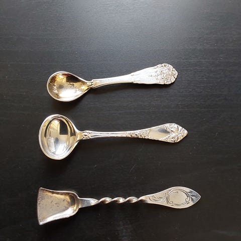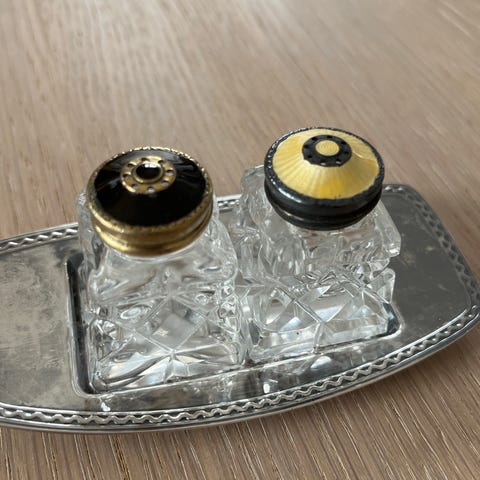 Salt og pepperbøsser i sølv, emalje og krystall - David Andersen