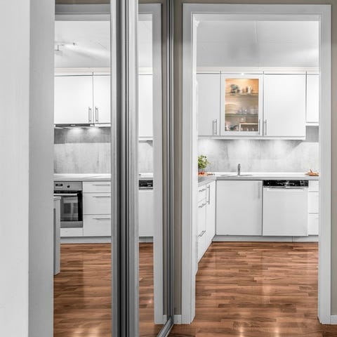 Skyvedørsgarderobe, garderobe, hvit, speildør, profil, skapdør
