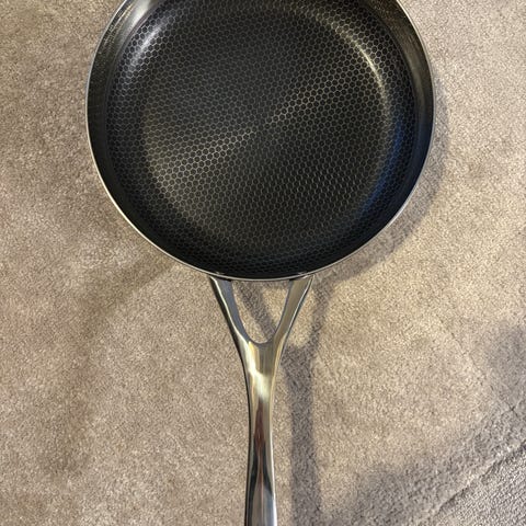 Helt ny 3 lags stekepanne med keramisk belegg fra Ask. Har en til som brukes daglig. Umulig å få riper eller stygge merker og ikke minst fantastisk å lage mat med.