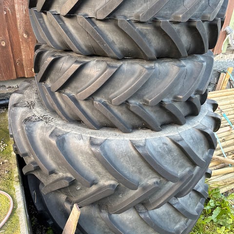 Har også ett 18.4-38 dekk som har noen sprekker.