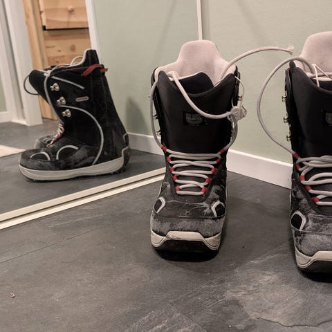 Pent brukte Burton Moto snowboardstøvler til salgs.