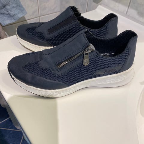 Rieker sko i størrelse 40, hvit farge. Laget i et elastisk materiale som gir en sokkelignende passform. Egnet for hverdagsbruk og lett aktivitet. Kjøpt som innesko, men ble for små. Kun prøvd på inne.